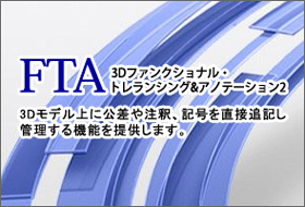株式会社エムテックではCATIA_V5 FTA(3Dファンクショナル・トレランシング&アノテーション2 )を使用した3D図面の作成業務の請負をしております。3Dモデル上に公差や注釈、記号を直接記入し管理する機能を提供します。 フィルタリング機能により、設計者は必要な交差や注釈を表示させることが可能です。3Dファンクショナル